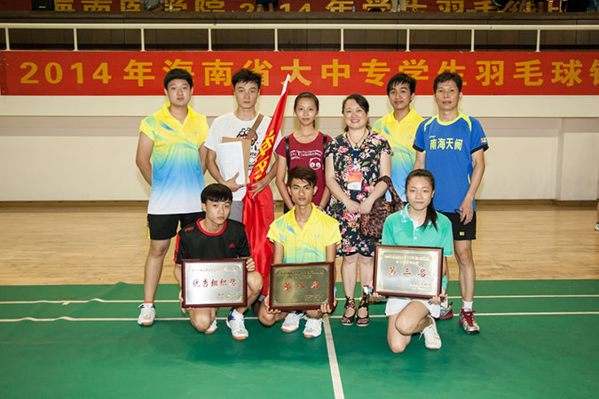 2014年6月21日至24日,Beat365羽毛球队赴海南医学院参加了2014年首届海南省大中专学生羽毛球竞标赛。三天的赛事已拉下帷幕,经过异常紧张的角逐,Beat3652013级三年制声乐班许梦芸同学获得中专组女子单打第三名;2011级四年制林子程同学和2012级三年制西洋乐班陈国宇同学获得中专组男子双打第八名;同时Beat365也获得优秀组织奖。