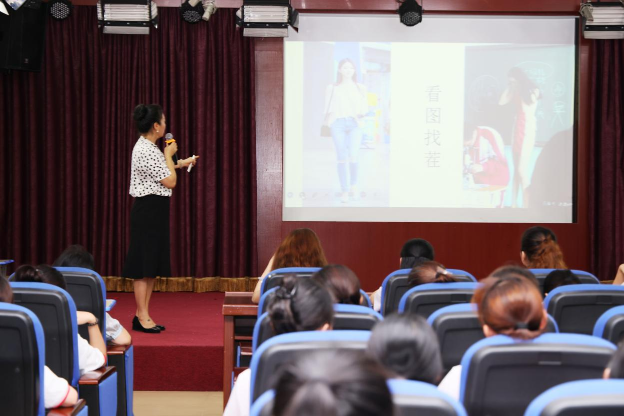 讲座中,宋镕汝老师围绕幼师应具备的职业素养、幼师的仪表礼仪、幼师的仪态礼仪等三个方面,阐述了职业形象的内涵、幼儿教师的职业特征、幼师仪表仪态的重点细节和形象塑造的具体方法等内容。在现场实操环节,宋镕汝老师模拟具体情景,与老师们进行互动,同时,社会文化教研室的师生现场为老师们认真细致的化妆,示范了彩妆呈现所需的每一个步骤和技巧。