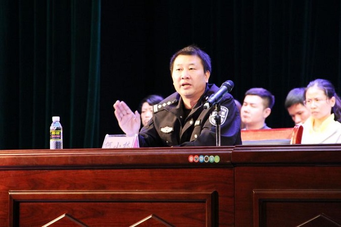在本次大会上,何小林所长传达学习《海南省教育厅关于开展2018年春季开学暨学校安全风险防控专项督导检查工作的通知》的各项要求并向同学们讲授了毒品危害与预防、偷盗诈骗刑事责任等安全、法律知识。何所长表示,他将定期深入学校了解情况,配合学校开展法治教育活动。