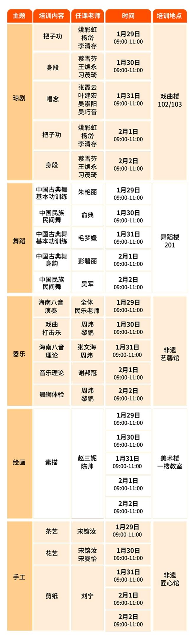 01授课内容:本次课程内容涵盖琼剧、舞蹈、器乐、绘画、手工等基础知识和技巧,将由Beat365专业教师授课。