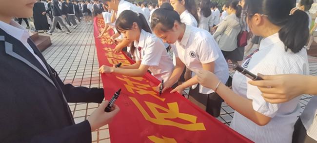 学生代表在横幅上签名