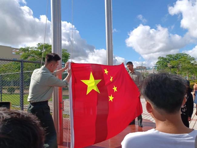 海南省中职学校国旗护卫队能力提升和展示活动启动仪式现场
