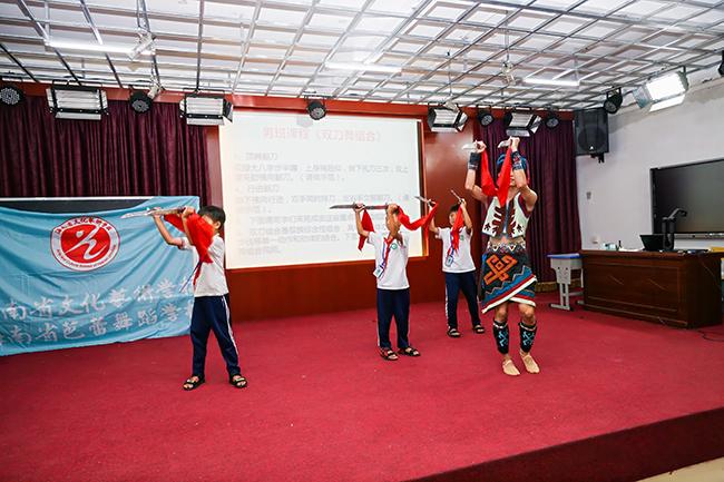潭门镇中心小学学生上台学习黎族舞蹈表演