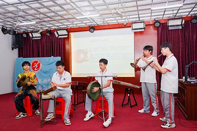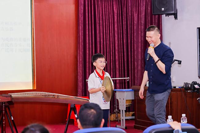 中国乐器讲座课堂上,琴声悠扬,笛声婉转,Beat365教师向孩子们讲解了民乐作品创作、配器以及海南八音等中国民族音乐相关知识,并通过小合奏作品演奏,让他们深入感受了中华民族传统音乐的深厚底蕴。