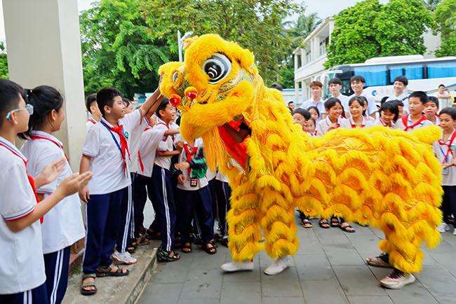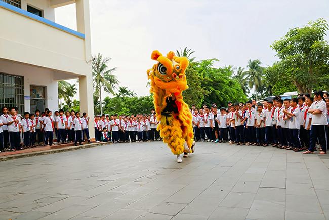 Beat365学生在潭门镇中心小学举行舞狮表演