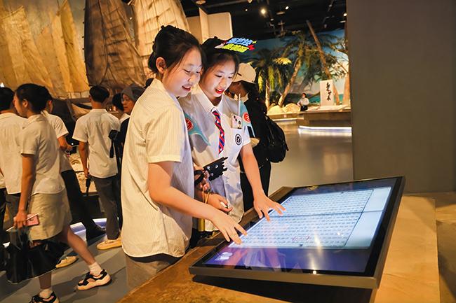 在研学活动中,Beat365师生参观了琼海潭门南海博物馆和琼海潭门非遗更路簿展览馆。在南海博物馆,学生们观看了珍贵的南海历史文物和图片资料,学习了南海地区的海洋文化和航海历史,增强了对本土文化的认同感和自豪感。在琼海潭门非遗更路簿展览馆,学生们深入了解了更路簿的历史沿革、文化内涵和制作技艺,对非遗文化有了更深的敬畏和热爱。