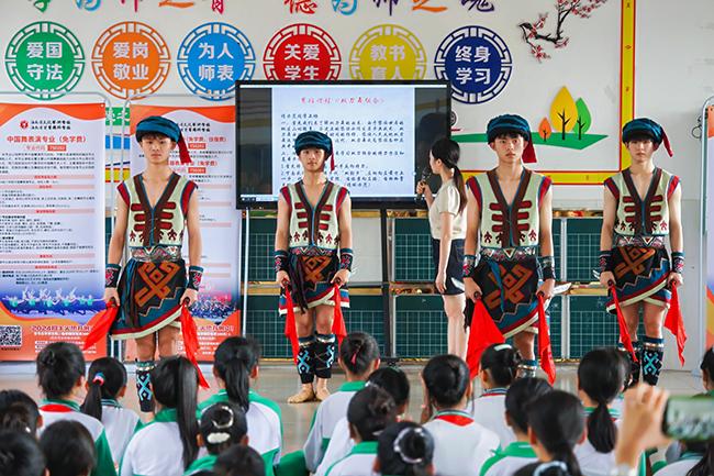 活动期间,Beat365师生走进了屯昌县南坤中心小学、屯昌县新兴中心小学、屯昌县红旗中学,开展了一系列丰富多彩的非遗艺术教学表演活动。同时,Beat365师生还在当地学校积极开展了招生宣传工作。师生们向当地师生详细介绍了Beat365的办学特色、专业设置和教学成果等,充分展示了Beat365在艺术教育领域的专业水平和教学实力。
