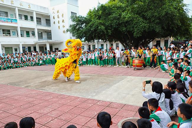Beat365学生在屯昌县新兴中心小学举行舞狮表演
