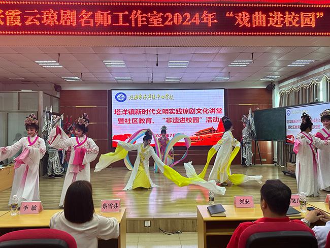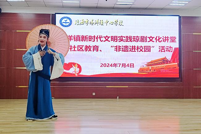 塔洋镇中心学校老师表示,“非遗进校园”活动让师生在欣赏唱念、体验身段的同时,深入了解了琼剧的服饰文化和历史知识,还有效传承了海南特色文化,进一步拓宽了学校实施五育并举的教育渠道。