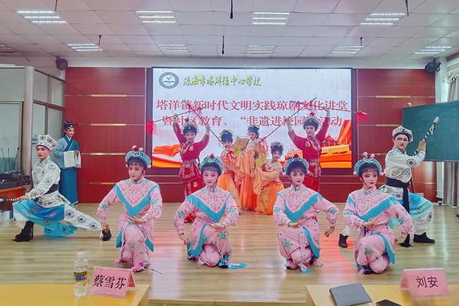 塔洋镇新时代文明实践琼剧文化讲堂暨社区教育活动、“非遗进校园”活动现场