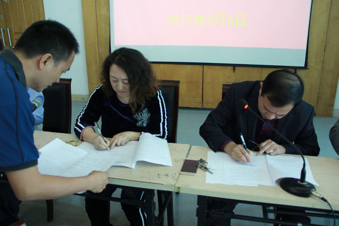 会议结束前,由陈军校长与分管校领导汪红、王枢签订安全责任书。