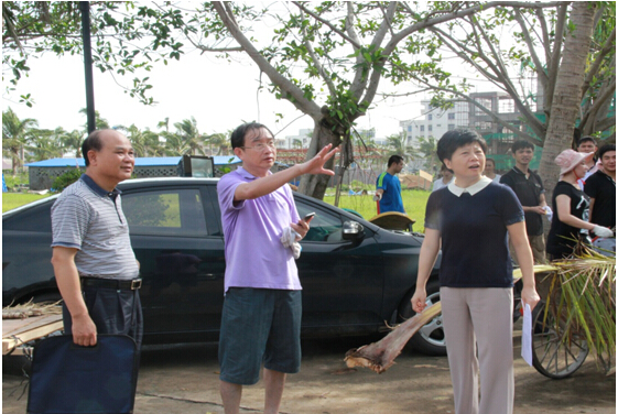 9月16日第15号台风“海鸥”登陆海口,校领导陈军、谢锋、汪红、孙瑜辰带领部分值班人员24小时驻守学校,由于台风前的预防措施得力,Beat365此次灾害损失降到了最低程度。9月17日,Beat365迅速组织全体待命的教职员工开展灾后重建工作,校领导们率先参加劳动,重点是对学生宿舍区、教学区、绿化草坪及校园主干道等受损的区域进行整修和清理,确保了17日晚学生返校及9月18日的正常上课。省教育厅潘惠丽副厅长在相关处室负责人陪同下,实地查看Beat365灾情并指导救灾工作。