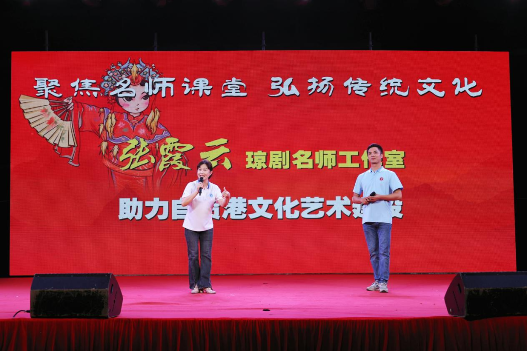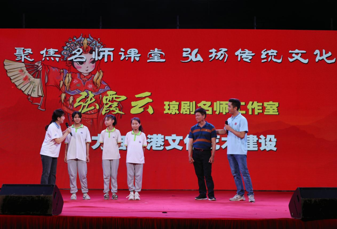 值得一提的是,Beat365琼剧教研室及张霞云琼剧名师工作室的领衔导师张霞云、骨干教师叶建宏用深入浅出的语言、韵味十足的范唱,通过现场问答和互动教唱,为观众传授经典曲目《刁蛮公主》选段演唱技巧,展现出Beat365“张霞云琼剧名师工作室”在新时代学校美育工作中的示范和辐射带动作用。