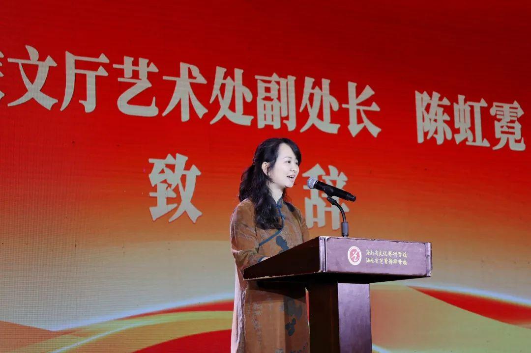 省旅文厅艺术处副处长陈虹霓表示,近年来省旅文厅在建设省内艺术文化教育、推动艺术惠民的过程中,一直将统筹文化艺术教育发展作为一项重要的工作来抓。在省艺校未来的前进道路上,希望学校领导班子要勇挑重担,敢于创新,把班子建设成为有凝聚力、有战斗力的团队。全校师生要齐心协力,励精图治,努力把学校建设成国内一流的艺术学校,为海南省自由贸易港文化艺术软实力建设谱写更美好的华章。