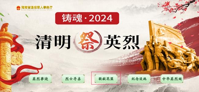 (https://yinglie.chinamartyrs.gov.cn/24qm/)开展网上敬献花篮活动,为社会公众在线祭扫英烈、瞻仰烈士纪念设施、了解各地活动动态提供渠道,或扫下方二维码,可进入海南省退役军人事务厅网上祭扫通道,向烈士敬献花篮。